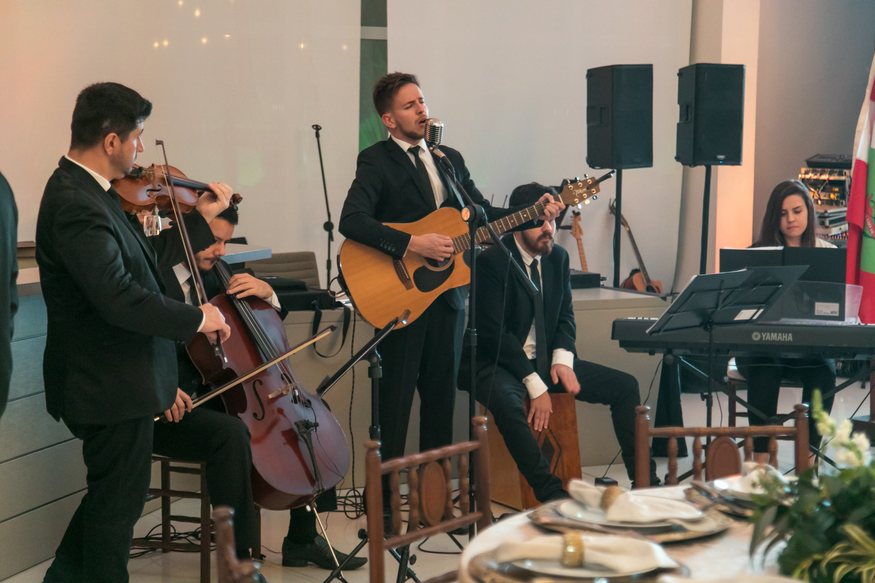 Formação: Violão com vocal masculino, violino, violoncelo, piano digital, contrabaixo e bateria