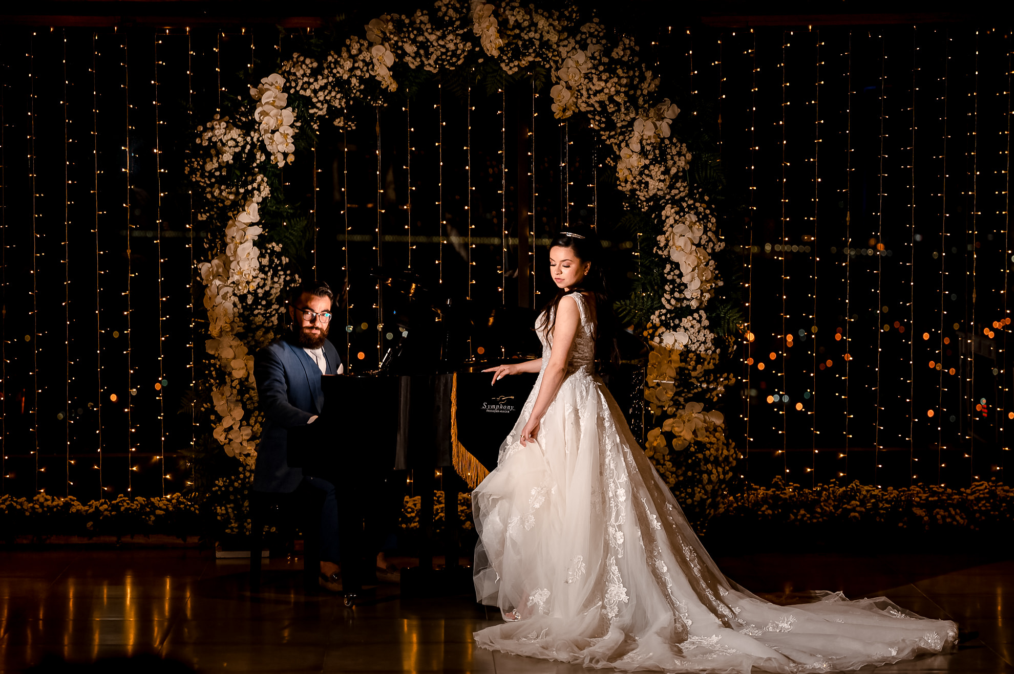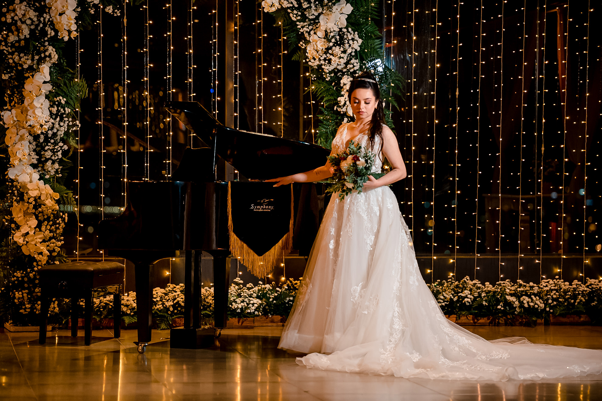 Encante seus convidados com o luxuoso Piano de Cauda Symphony. Disponível para casamentos, eventos especiais, ensaios fotográficos e gravações de clipes musicais, o nosso piano é o toque de sofisticação que transforma qualquer ambiente. Mais do que um instrumento, o Piano de Cauda Symphony é uma peça de decoração única, símbolo de elegância e bom gosto. Se você busca aquele luxo extra que impressiona e encanta, este é o destaque que tornará o seu evento inesquecível — e o assunto mais comentado da noite. ✨